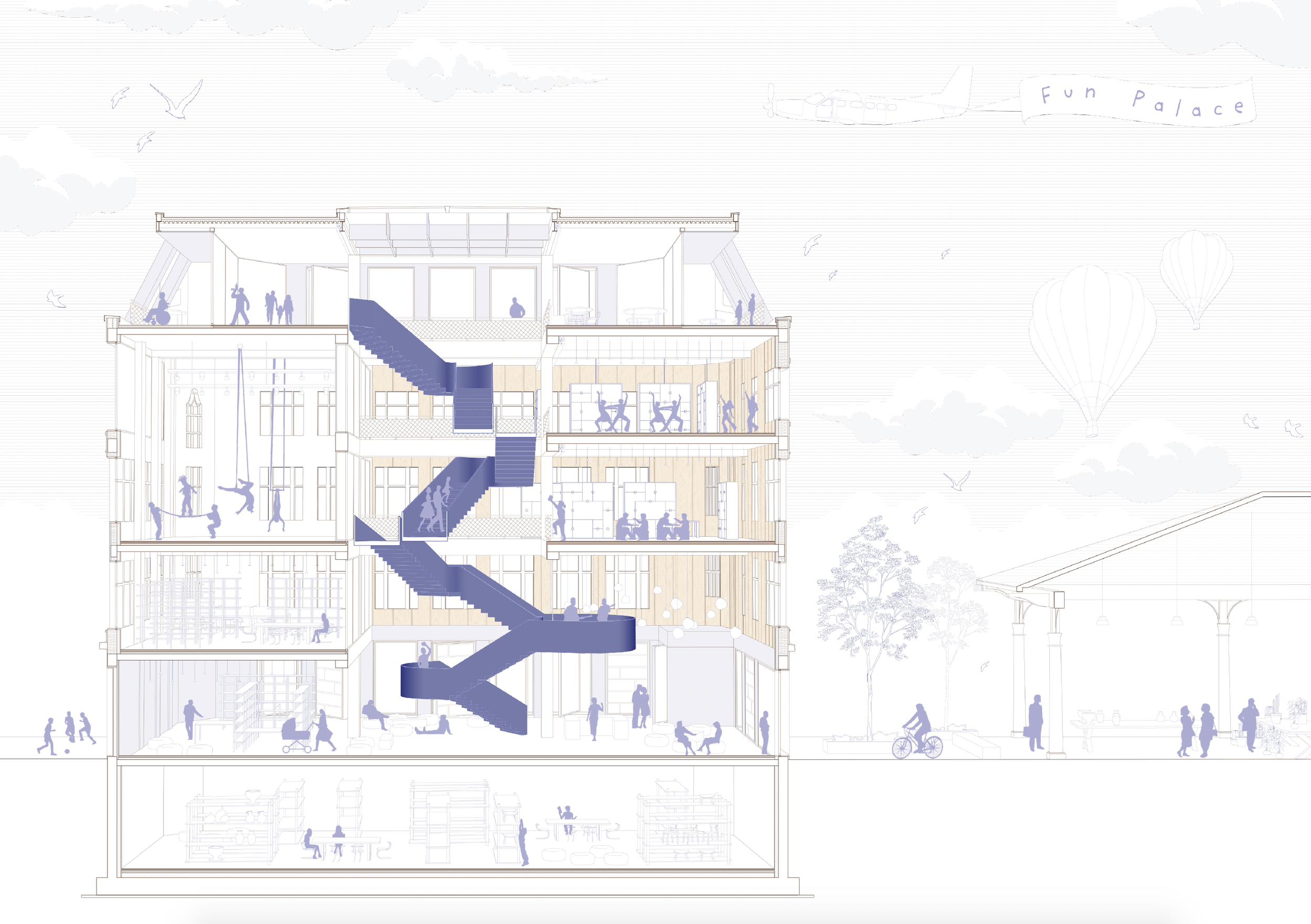 Preston Fun Palace was the final project that I led at Manchester School of Architecture before moving into freelance work, and one that underpins so many of my core values. Developed as a collaboration between the Continuity in Architecture atelier and Fun Palaces UK, the project drew inspiration from the original 1961 Fun Palace concept by Cedric Price and Joan Littlewood - a visionary idea for a flexible, interactive cultural space - and its modern revival through Stella Duffy’s grassroots network of community-led cultural events.
